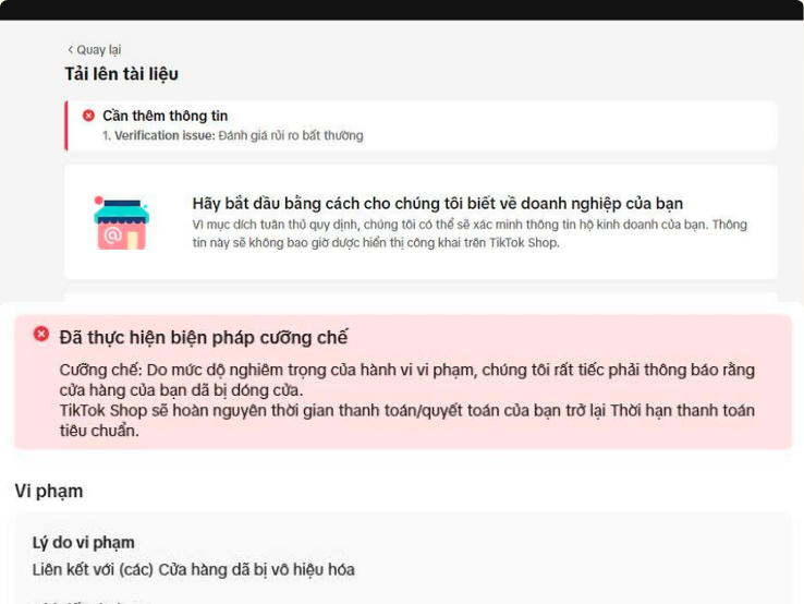 4. Shop bị khóa, nghi ngờ gian lận hoặc rủi ro bất thường