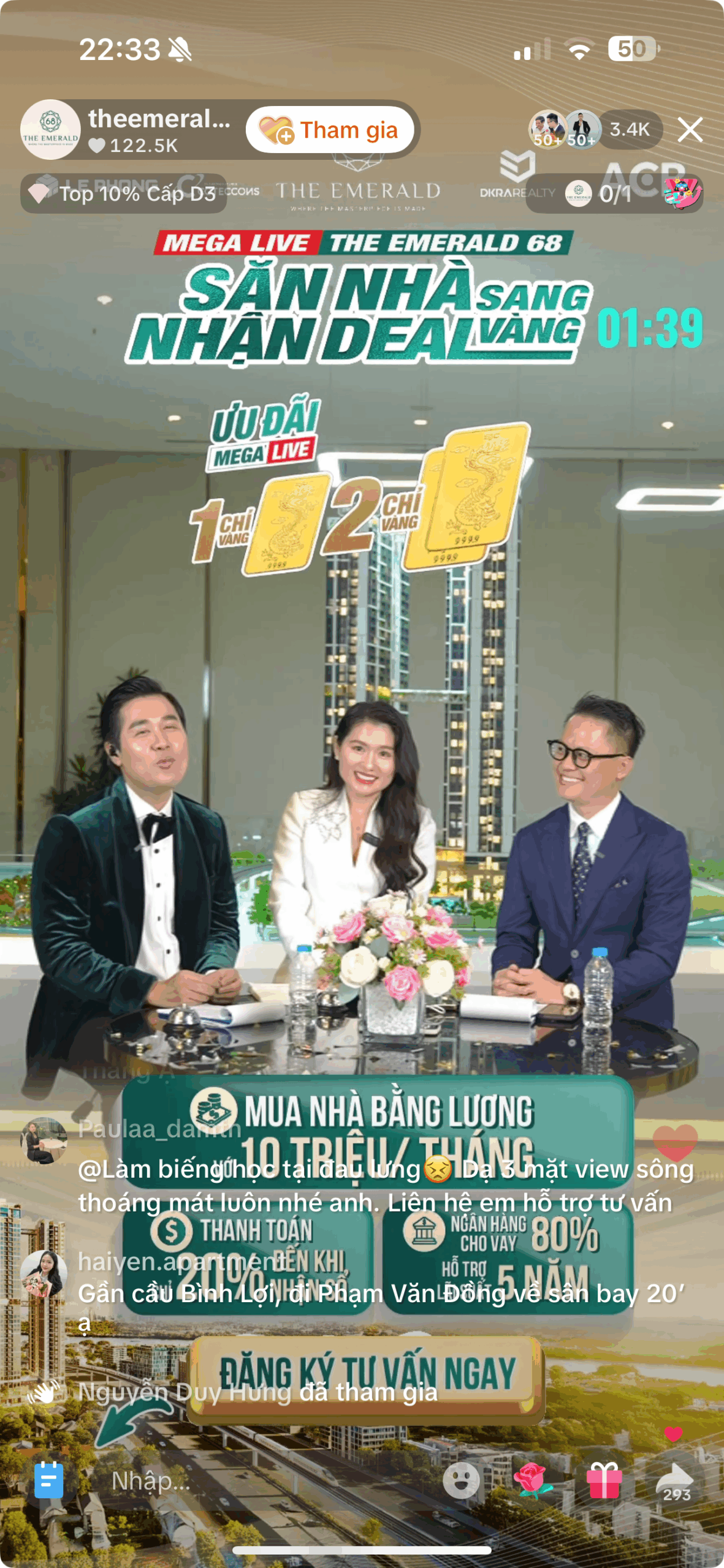 TikPlus Vietnam là Agency đầu tiên triển khai thành công mô hình Mega Live BĐS đa điểm chạm – đa trải nghiệm , giúp dự án đạt hiệu quả thực qua livestream.