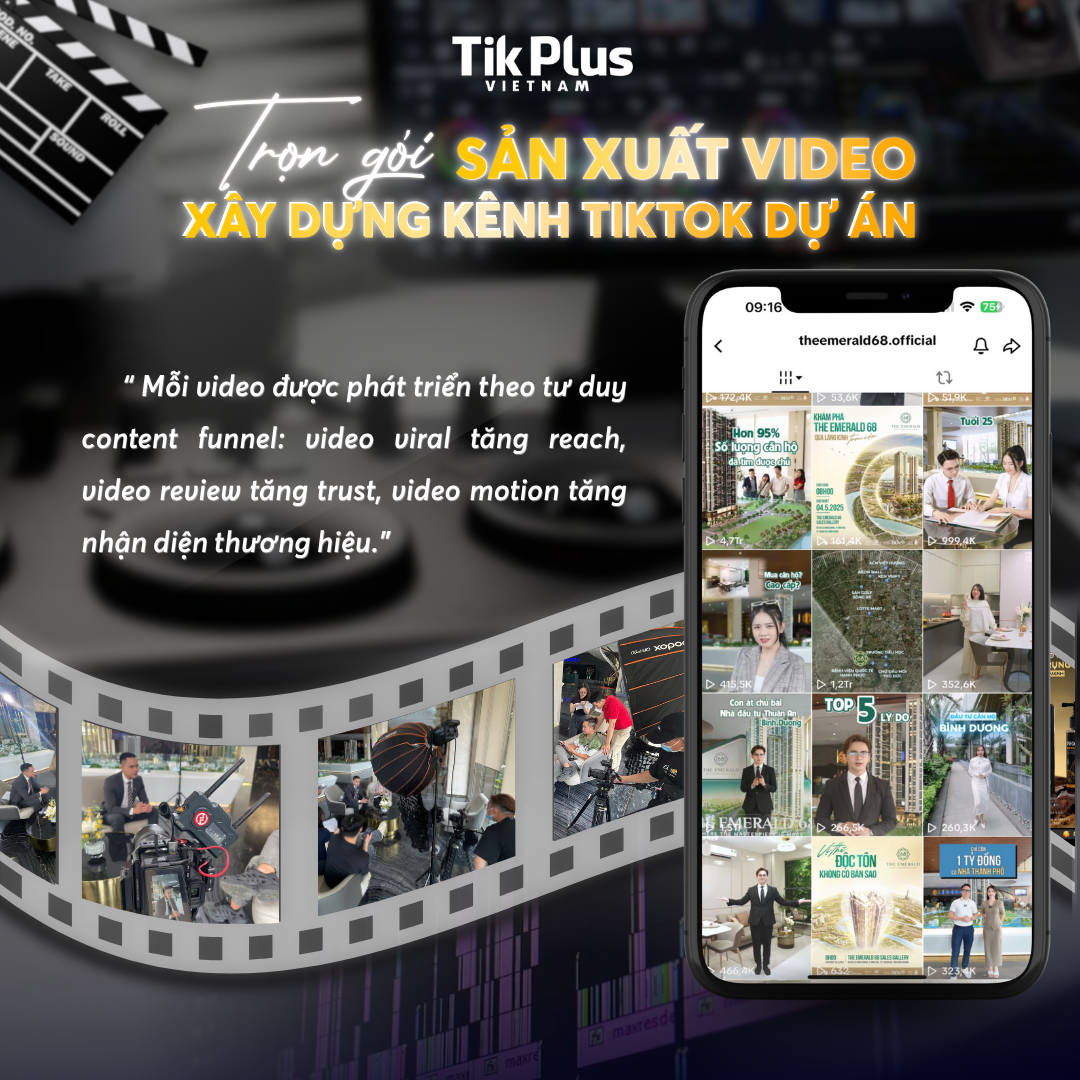 • TikPlus hỗ trợ xây dựng kênh TikTok chuyên biệt cho dự án BĐS hoặc thương hiệu chủ đầu tư – từ chiến lược nội dung đến sản xuất video định kỳ.