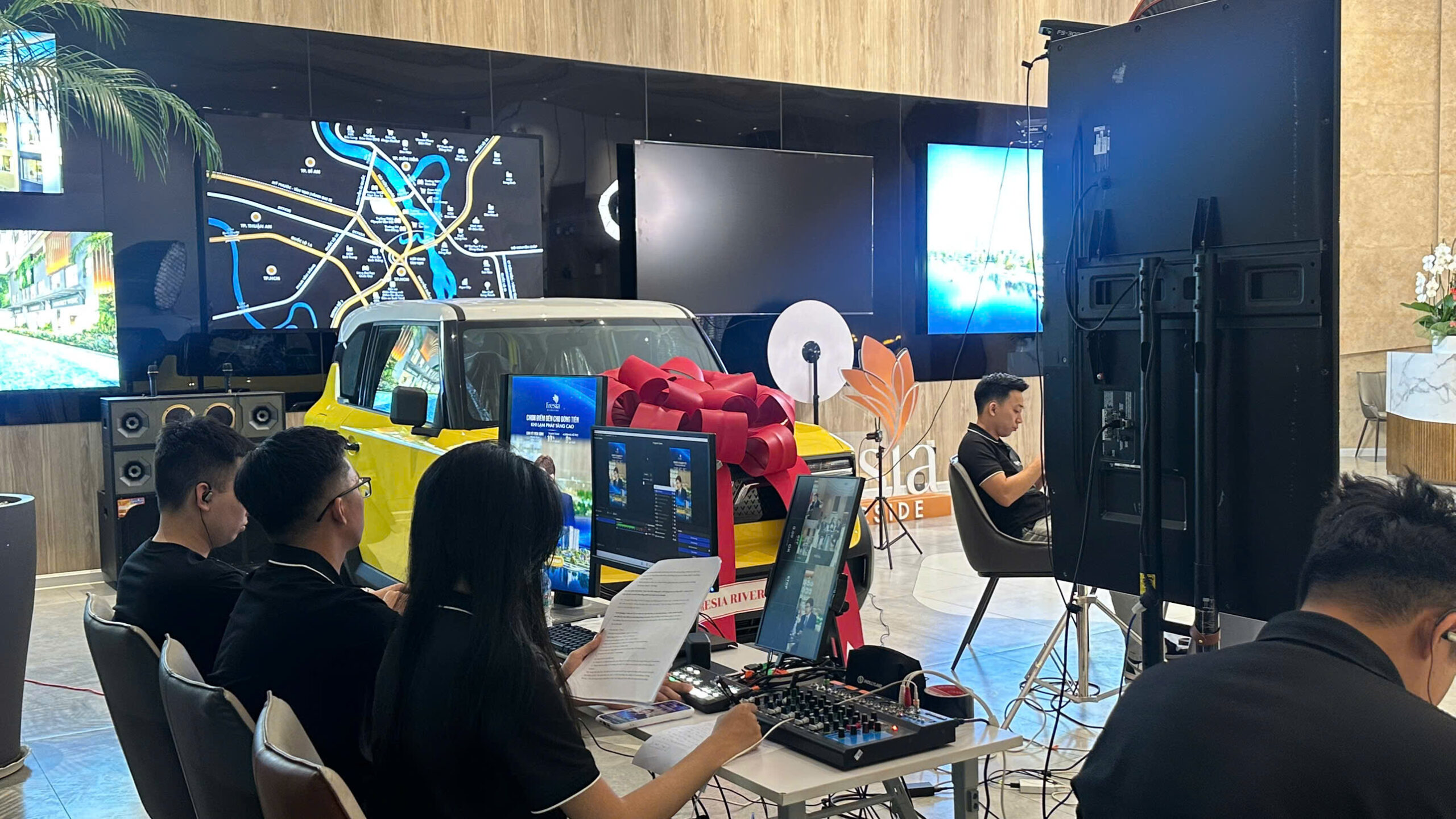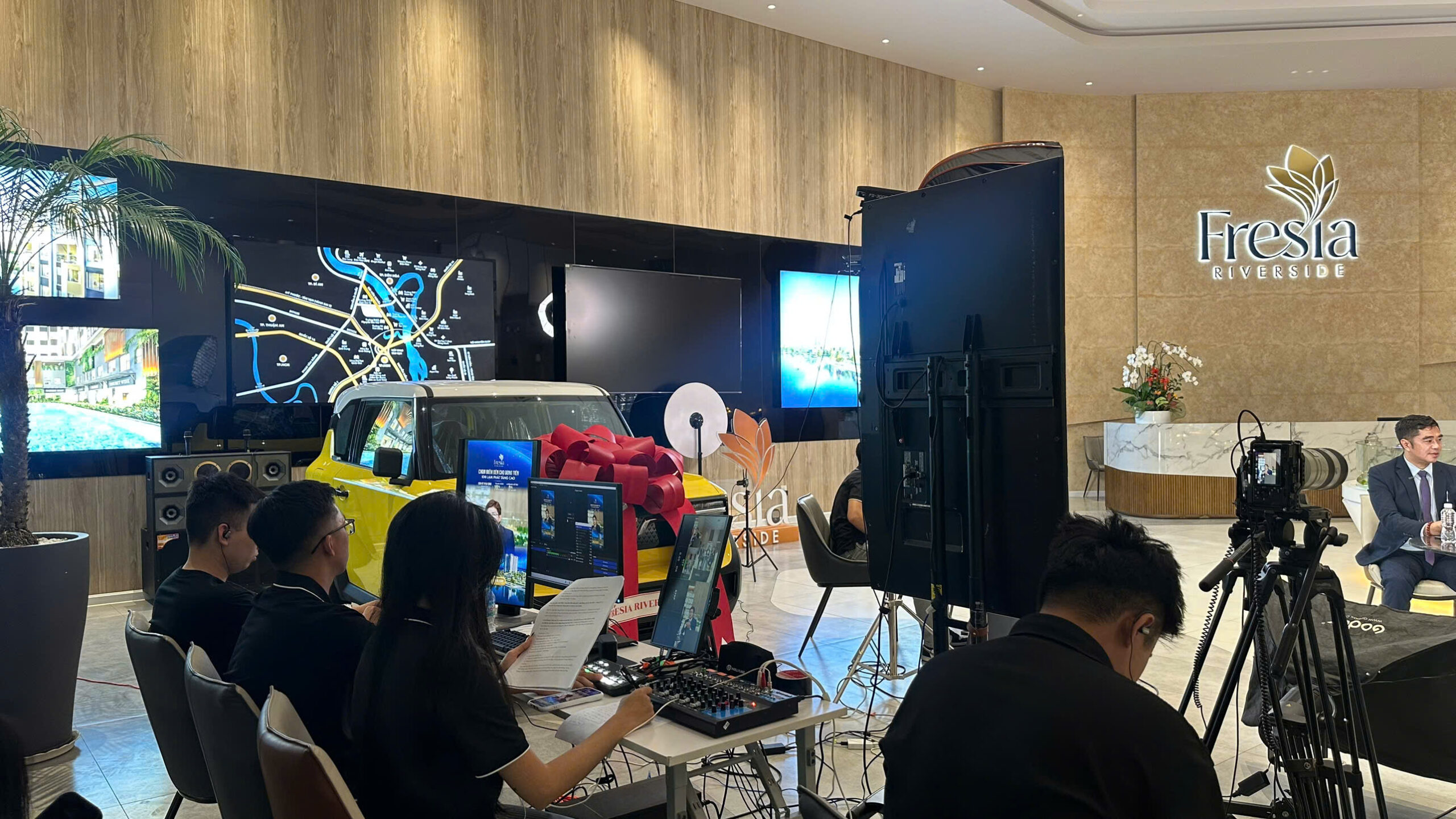 Khảo sát địa điểm, chuẩn bị bối cảnh, MC/KOL, set thiết bị, kịch bản dẫn.
